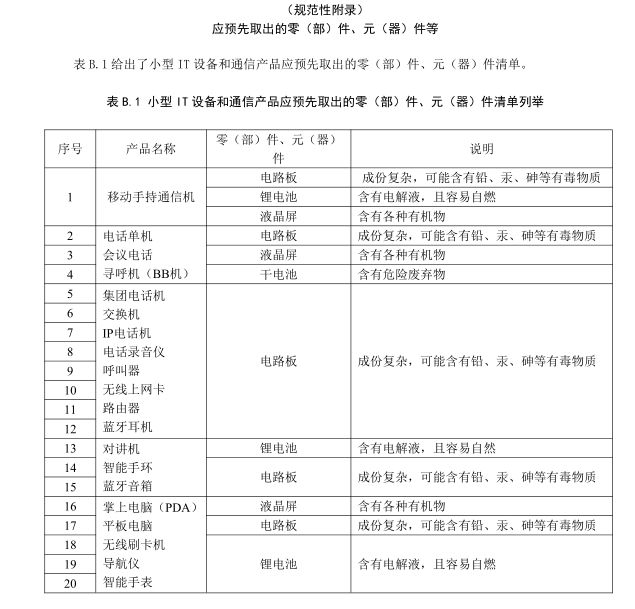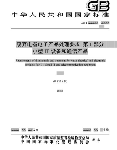 回收利用分委會公布了《〈廢棄電器電子產(chǎn)品處理要求第1部分:小型IT設(shè)備和通信產(chǎn)品〉國家標準(征求意見稿)》、《〈廢棄電器電子產(chǎn)品處理要求第1部分:小型IT設(shè)備和通信產(chǎn)品〉國家標準編制說明》兩個文件,以下分別簡稱《征求意見稿》和《編制說明》。兩個文件分別發(fā)布于今年7月和8月,征求意見將于本月底結(jié)束。