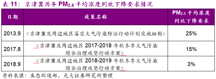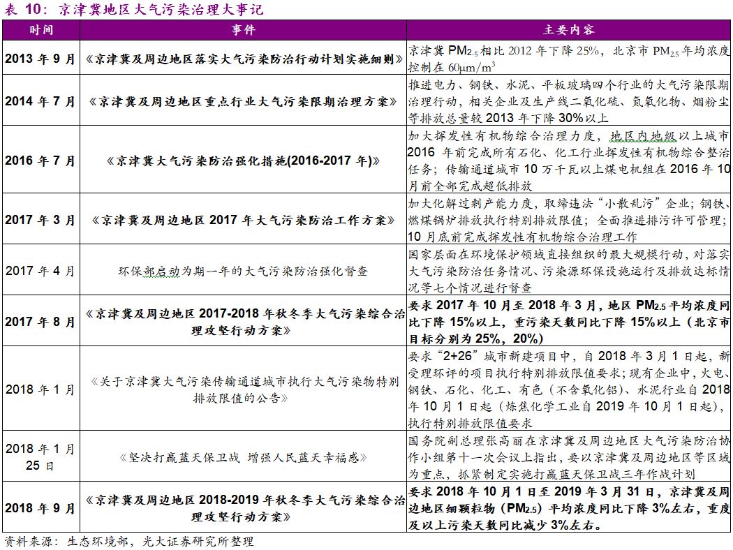 值得注意的是,最新的《京津冀及周邊地區(qū)2018-2019年秋冬季大氣污染綜合治理攻堅行動方案》從(修訂意見稿)到最終落地,PM2.5平均濃度同比降低幅度從5%下調(diào)至3%,我們在之前《PM2.5約束“從5%到3%”釋放了什么信號?》中已有所解讀。結(jié)合宏觀經(jīng)濟形勢,我們認(rèn)為在當(dāng)前已取得一定環(huán)保治理效果的情況下,通過科學(xué)、分梯度的環(huán)保治理方法,既可以不對經(jīng)濟產(chǎn)生明顯的負(fù)面影響,也將是未來實現(xiàn)環(huán)保目標(biāo)平穩(wěn)且正確的路徑。