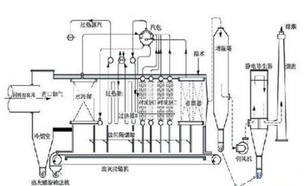 其中,余熱鍋爐是利用垃圾灰渣、廢氣和廢液中溫度不夠高、難以直接用來(lái)發(fā)電的余熱集中起來(lái),用于原料的預(yù)加熱和其它需熱功能中。有了它,垃圾焚燒的發(fā)電效率就能夠大大提高,排出的煙氣和灰渣的溫度可以大幅下降。
