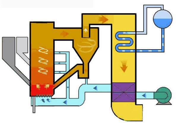 為了解決垃圾熱值低,燃燒不穩(wěn)定的問(wèn)題,工程還采用了循環(huán)流化床鍋爐,它將垃圾固體顆粒懸浮在半空中,從而使垃圾顆粒的燃燒類似于流體,進(jìn)而提高燃燒效率。