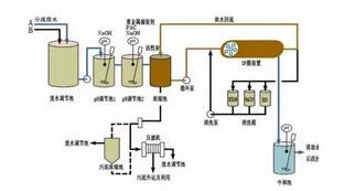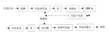 當(dāng)單一的處理方法處理效果不理想時(shí),為了達(dá)到污水排放的標(biāo)準(zhǔn),可以使用多種方法聯(lián)合的方式。最常見(jiàn)的是物理-化學(xué)處理法,其基本工藝如下: