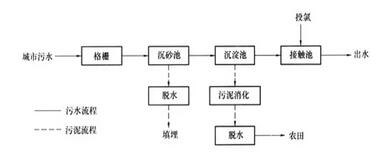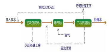 活性污泥工藝是國(guó)內(nèi)外城市污水處理工藝的主流。由于其較高的處理效率,運(yùn)行穩(wěn)定可靠,而被大中型污水處理廠廣泛使用。其基本工藝流程圖如下: