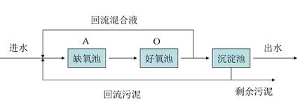 A-O工藝法也叫厭氧好氧工藝法,A是厭氧段,用于脫氮除磷;O是好氧段,用于除水中的有機(jī)物。該工藝的主要缺點(diǎn)有兩個(gè):一是由于沒(méi)有獨(dú)立的污泥回流系統(tǒng),從而不能培養(yǎng)出具有獨(dú)特功能的污泥,難降解物質(zhì)的降解率較低;二是若要提高脫氮效率,必須加大內(nèi)循環(huán)比,因而加大運(yùn)行費(fèi)用。此外,內(nèi)循環(huán)液來(lái)自曝氣池,含有一定的DO,使A段難以保持理想的缺氧狀態(tài),影響反硝化效果,脫氮率很難達(dá)到90%。