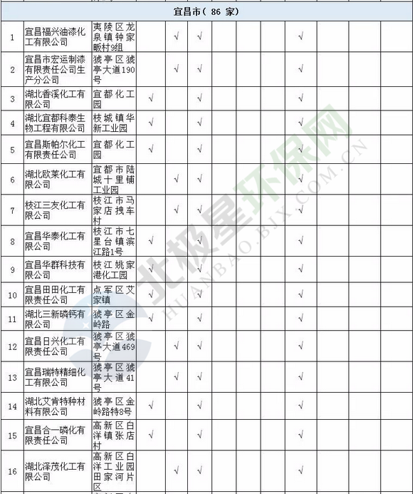 日前湖北省經(jīng)信委發(fā)布了關(guān)于《湖北省沿江化工企業(yè)關(guān)改搬轉(zhuǎn)任務(wù)清單(征求意見稿)》公示,其中涉及湖北省沿江化工企業(yè)總計497家。公示期為2018年9月30日至10月11日。其中,武漢市( 93家 )、襄陽市( 21家 )、宜昌市( 86 家)、十堰市( 21家)、荊州市(81家)、黃石市(16家)、荊門市(56家)、鄂州市(14家)、孝感市(8家)、黃岡市(38家)、咸寧市(8家)、恩施州(4家)、仙桃市(20家)、天門市(9家)、潛江市(22家)。