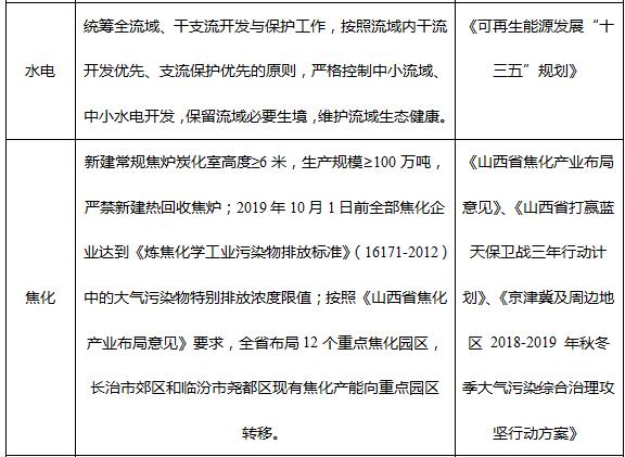 (1)在能源開發(fā)利用過程中,嚴格遵守國家和山西省的主體功能區(qū)規(guī)劃和生態(tài)功能區(qū)劃,不得在禁止開發(fā)區(qū)、環(huán)境敏感區(qū)及生態(tài)紅線等區(qū)域布局能源建設(shè)項目。在布局建設(shè)能源項目時,應堅持“點上開發(fā)、面上保護”的原則,最大減輕對生態(tài)環(huán)境的不良影響。在布局煤電項目時應盡可能兼顧周邊工業(yè)企業(yè)和居民集中供熱需求,采用熱電聯(lián)產(chǎn)或具備一定供熱能力的機組,以集中供熱替代分散小鍋爐供熱,削減污染物排放量。在布局煤化工項目時應考慮水資源承載力,原則上要求不采用地下水。在水資源得到保障的前提下,要求煤電項目盡量與煤化工項目配套建設(shè),利用電廠鍋爐提供煤化工生產(chǎn)中需要的大量蒸汽,減少煤化工項目自備鍋爐的建設(shè)。在布局水電項目時應充分考慮其生態(tài)影響,防止對水生態(tài)、水生物造成重大不利影響。水電項目下泄水須滿足壩址下游河道水生生態(tài)、水環(huán)境、景觀、濕地等生態(tài)環(huán)境用水及下游生產(chǎn)、生活取水要求,不得造成脫水河段和對農(nóng)灌、水生生物造成重大不利影響。涉及水生珍稀特有物種重要生境等河段嚴格水電環(huán)境準入。