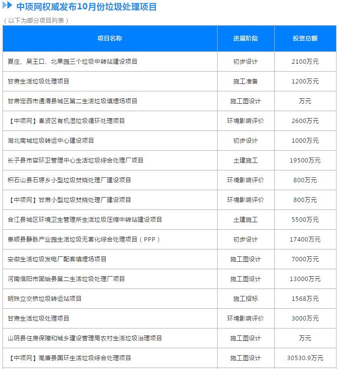原標(biāo)題:10月份全國擬在建垃圾處理項目