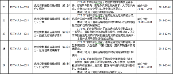 該標(biāo)準(zhǔn)將于2018年12月1日起實施。標(biāo)準(zhǔn)包括7個部分、600多頁、40多萬字,內(nèi)容完整、系統(tǒng)性強(qiáng),對危險貨物分類、包裝、托運(yùn)、裝卸、運(yùn)輸?shù)拳h(huán)節(jié)的操作要求都進(jìn)行了明確規(guī)定。