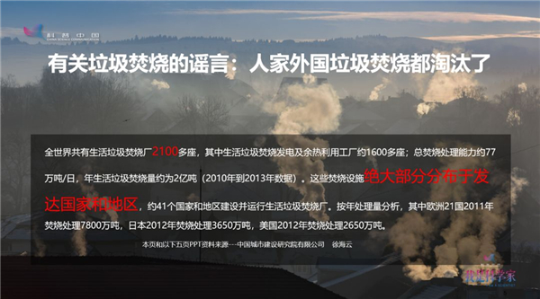 首先大家覺得垃圾的焚燒可能會產生污染,而污染會損害公眾的健康。更重要的是公眾覺得一個城市的垃圾,為什么不在你家附近處理,非要拉到我們家附近?所以心理上有很多的不平衡。于是西方國家80年代開始興起的這場運動,導致在國外出現了很長時間的垃圾焚燒處理的停滯期。