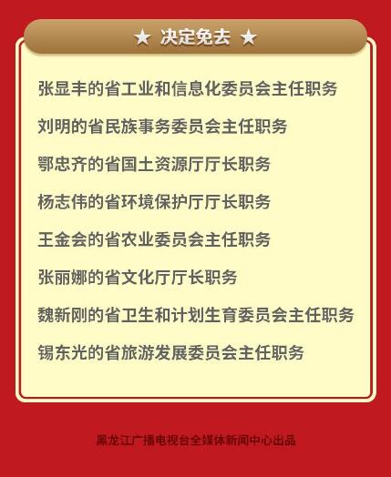 2018年10月19日,黑龍江省第十三屆人民代表大會常務(wù)委員會第六次會議通過黑龍江省人大常委會任免名單。