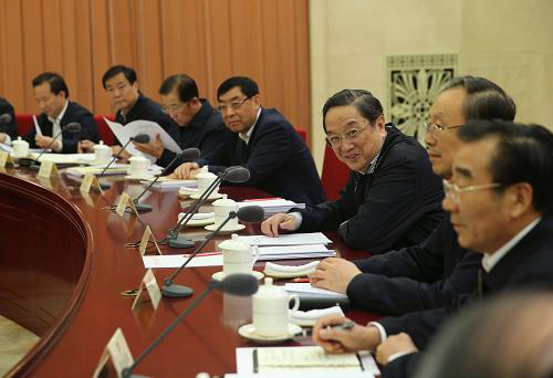2014年10月30日,全國(guó)政協(xié)在北京召開(kāi)雙周協(xié)商座談會(huì),就“利用水泥窯協(xié)同處置垃圾廢棄物”問(wèn)題建言獻(xiàn)策。全國(guó)政協(xié)主席俞正聲主持會(huì)議并講話(huà)。新華社記者 劉衛(wèi)兵 攝