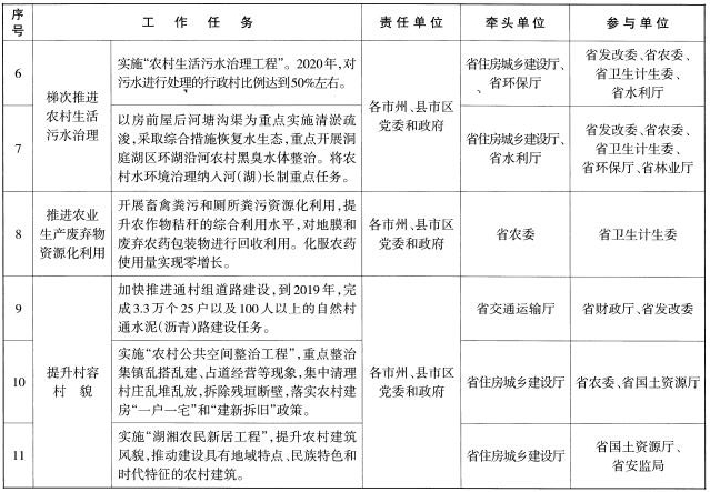 (三)全面推進整治任務。在典型示范、總結經(jīng)驗的基礎上,集中推廣成熟做法、技術路線和建管模式。各地要按照總體目標任務,分區(qū)域分年度安排整治任務,2018年全面啟動,2019年全面推進,2020年任務掃尾、鞏固提升,全面完成各項任務。各地要優(yōu)先支持貧困縣和貧困村開展人居環(huán)境整治,優(yōu)先整治重要水源地周邊和水質(zhì)需改善控制單元內(nèi)村莊的生活垃圾污水,加強高鐵和高速公路沿線環(huán)境治理。洞庭湖區(qū)和湘江沿岸縣市區(qū)要加快實施。省市有關部門要加強檢查、評估和督導,確保整治工作健康有序推進。