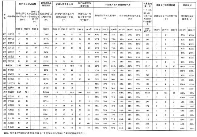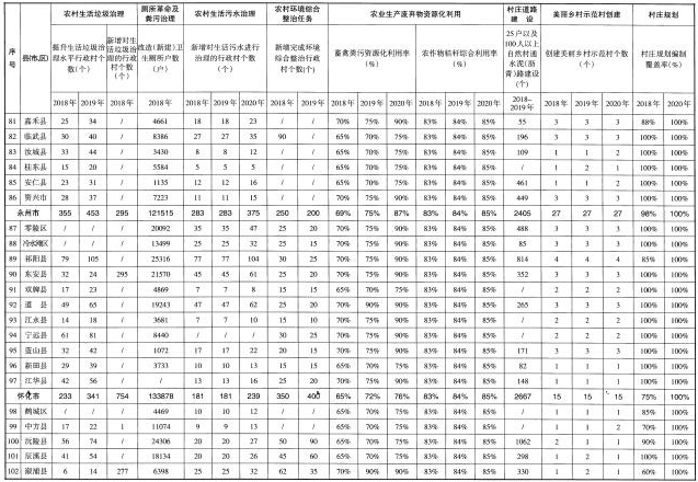 (一)深入推進農(nóng)村生活垃圾治理。實施“農(nóng)村生活垃圾治理工程”,加快農(nóng)村垃圾五年專項治理,統(tǒng)籌考慮生活垃圾和農(nóng)業(yè)生產(chǎn)廢棄物利用、處理,建立符合農(nóng)村實際的農(nóng)村生活垃圾收運處置體系,建立穩(wěn)定高效的運行維護管理機制。推廣適合農(nóng)村特點的垃圾就地分類和資源化利用方式,不斷提升農(nóng)村垃圾治理水平。對較大規(guī)模的非正規(guī)垃圾堆放點和河道水面漂浮垃圾進行清理整治,清理河湖沿岸垃圾,重點整治“垃圾山”、“垃圾島”、“垃圾圍村”、“垃圾圍壩”、工業(yè)污染“上山下鄉(xiāng)”。加強生活垃圾處理技術研究和設施研發(fā),鼓勵和支持秸稈、畜禽糞便等農(nóng)業(yè)廢棄物資源綜合利用。2018年,新增對垃圾進行處理的行政村2400個左右,全省對垃圾進行處理的行政村比例基本達到90%,每個市州選擇1個縣市區(qū)開展農(nóng)村生活垃圾就地分類和資源化利用的試點。2019年,基本達到國家農(nóng)村生活垃圾治理驗收標準,達到“五有”標準。2020年,全面完成農(nóng)村生活垃圾治理任務。