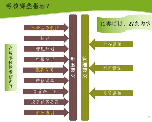 如果你連危險(xiǎn)廢物規(guī)范化的要求都不清楚,那可能要補(bǔ)的課不是一點(diǎn)點(diǎn)了。危險(xiǎn)廢物規(guī)范化管理指標(biāo)共12類27項(xiàng)內(nèi)容,這里就不詳細(xì)介紹了。作為一般的產(chǎn)廢單位,做到40分以上,才算達(dá)標(biāo)。