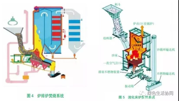 其中焚燒爐是垃圾焚燒發(fā)電的核心,決定著垃圾處理的效果和運(yùn)行的經(jīng)濟(jì)性。焚燒爐充分燃燒后才能達(dá)到無害化和減量化的目標(biāo)。常用的焚燒爐有爐排爐、流化床焚燒爐、熱解焚燒爐、回轉(zhuǎn)窯等類型。下面介紹最為常見的爐排爐和循環(huán)流化床兩種模式。