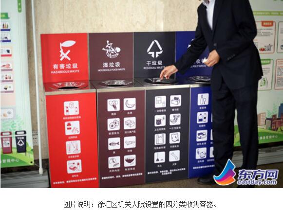 徐匯區(qū)機(jī)關(guān)大院配置約200個(gè)垃圾分類容器