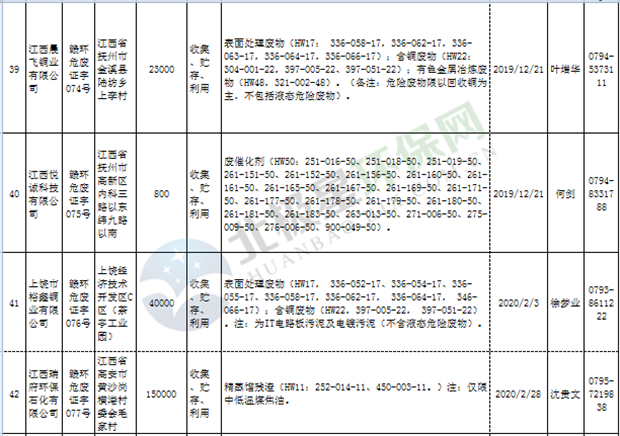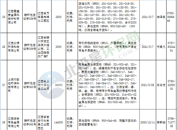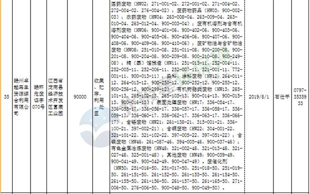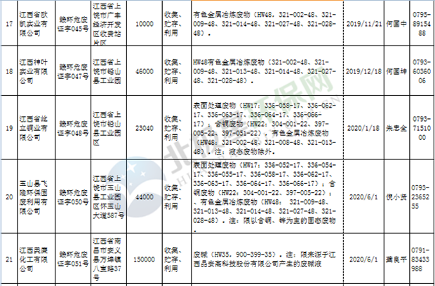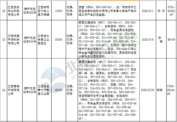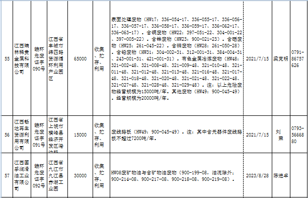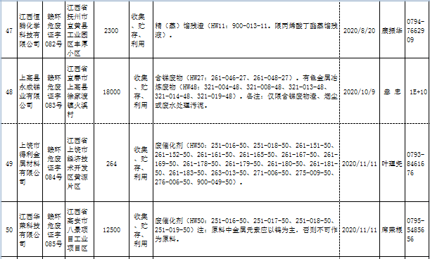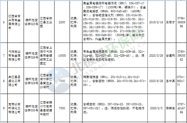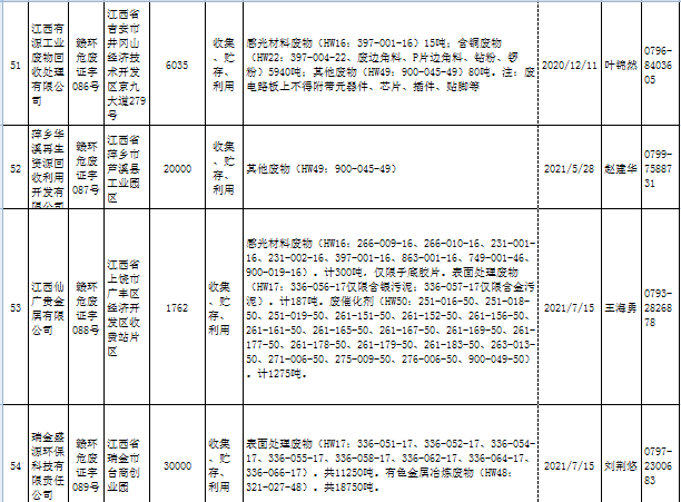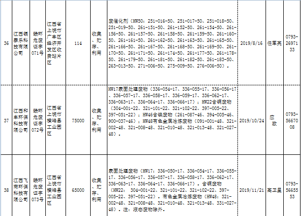 江西省臨時危險廢物經(jīng)營許可證持證單位名單(省廳審批) 10月09日更新