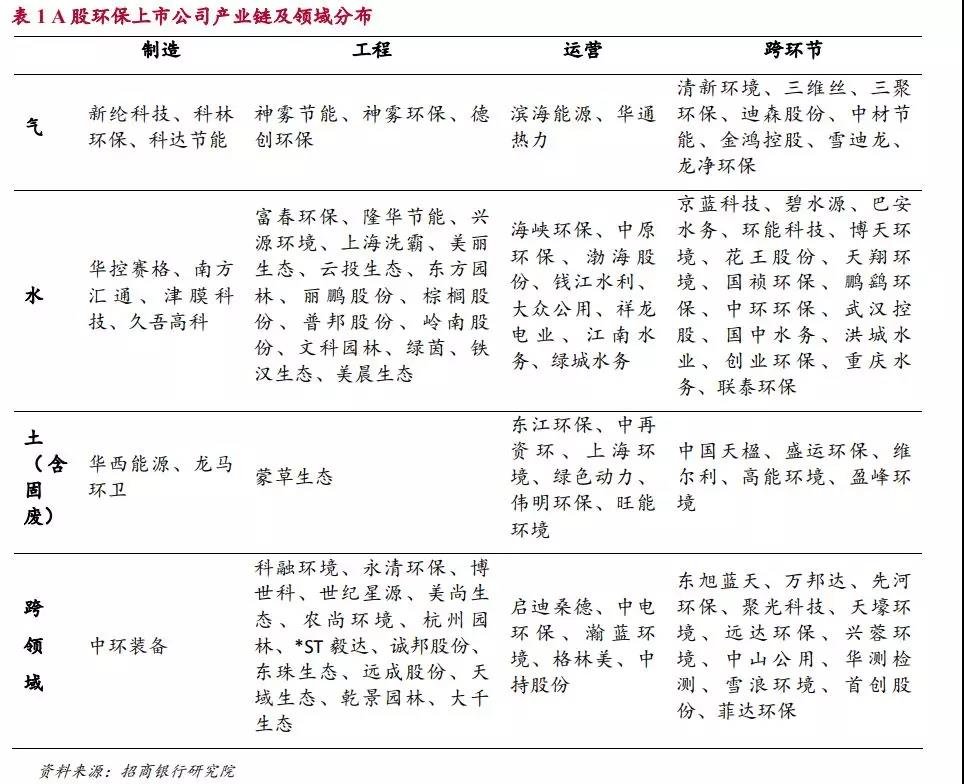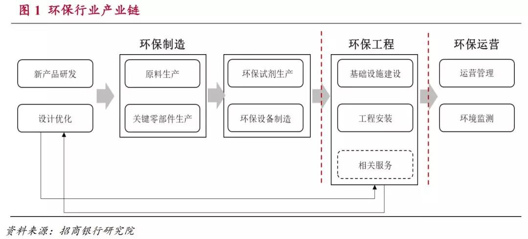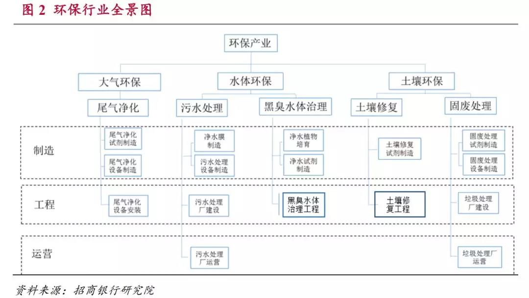 環(huán)保產(chǎn)業(yè)除了按照環(huán)保領域可以分為氣、水、土三個方面以外,從產(chǎn)業(yè)鏈的角度還可以分為環(huán)保制造,環(huán)保工程和環(huán)保運營三個環(huán)節(jié)。