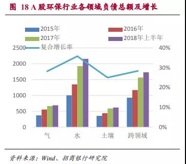 在各領域的資產(chǎn)中,水體環(huán)保的資產(chǎn)在A股環(huán)保行業(yè)資產(chǎn)中占比最高,2018年上半年占到了41.44%。同時這一領域增速也是最快的,達到26.76%。由于水體環(huán)保在未來的3-5年內還將是我國環(huán)保治理的重點領域。我們預計這種趨勢還將持續(xù)一段時間。另外,隨著非電工業(yè)“超低排放”標準的推行,未來大氣環(huán)保在全領域中的資產(chǎn)占比或也將有所提升。