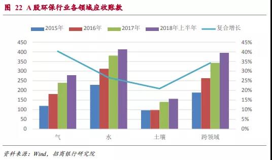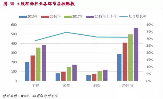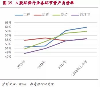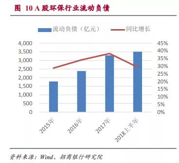 近年來A股環(huán)保行業(yè)應收賬款增速一直維持在30%及以上的增速,因此盡管環(huán)保行業(yè)整體的資產(chǎn)負債率水平還相對可控,但短期流動性的風險是需要重點關注的方面。