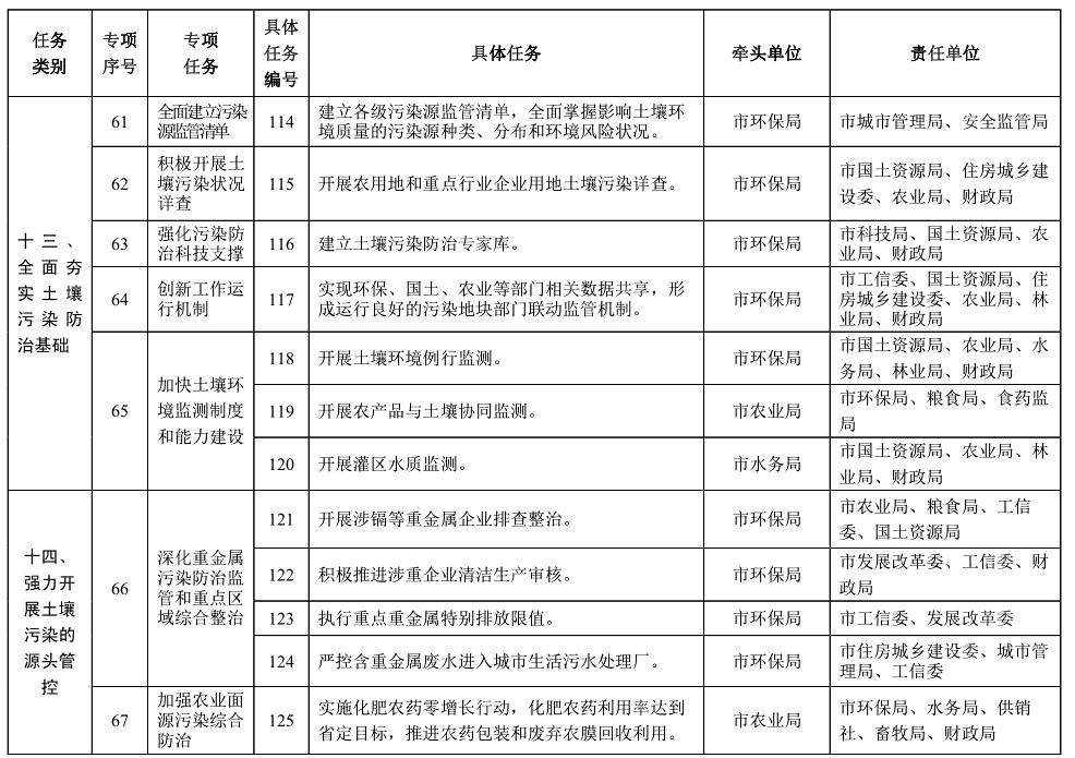 責任單位:市環(huán)保局、國土資源局、科技局、財政局,各縣(市、區(qū))人民政府(管委會)