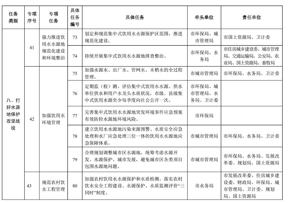 責任單位:市住房城鄉(xiāng)建設委、水務局、環(huán)保局,各縣(市、區(qū))人民政府(管委會)