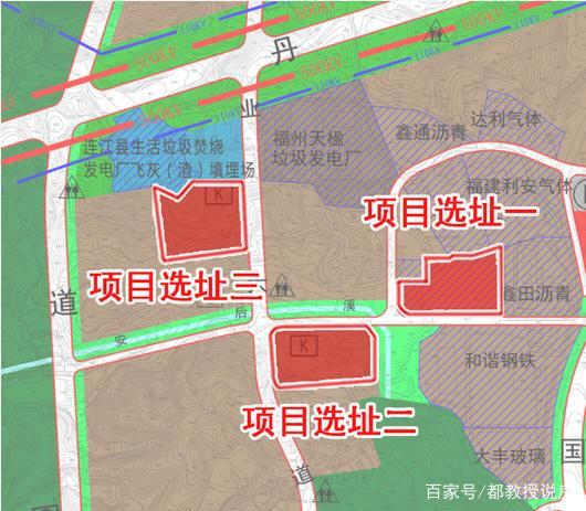 本次選址方案共三個(gè)地塊,均位于東湖鎮(zhèn)飛石村北側(cè),用地性質(zhì)均為二類工業(yè)用地。三個(gè)擬選址地塊均位于連江西北經(jīng)濟(jì)區(qū)南部,位于工業(yè)園區(qū)中心地帶,距連江縣城約7公里,距福州市區(qū)約24公里,靠近產(chǎn)品主銷區(qū)。三個(gè)擬選址地塊均距離連江縣生活垃圾焚燒發(fā)電廠、連江縣生活垃圾焚燒發(fā)電廠飛灰(渣)填埋場(chǎng)不足0.5公里,垃圾轉(zhuǎn)運(yùn)方便。
