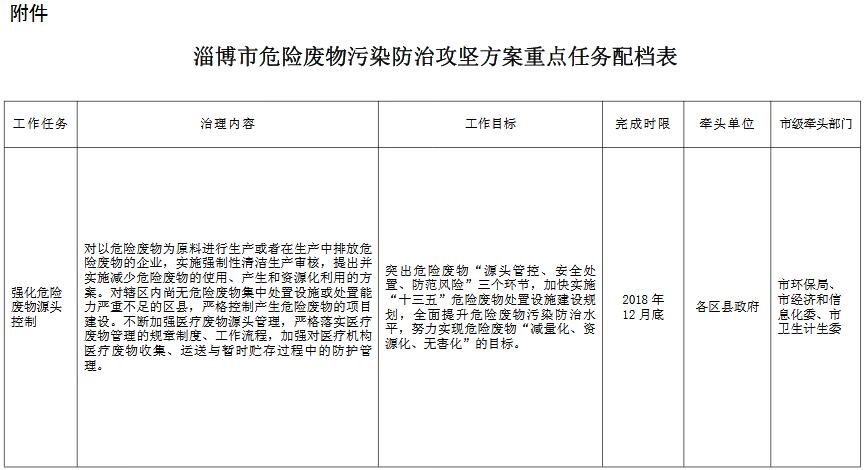 附件:淄博市危險廢物污染防治攻堅方案重點任務配檔表