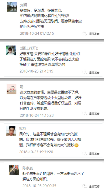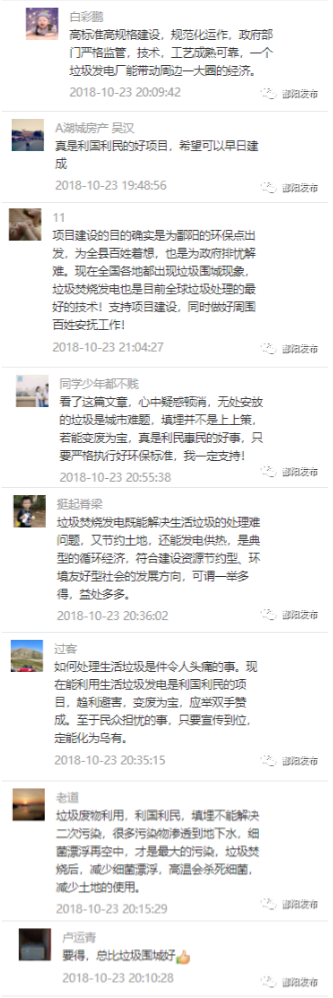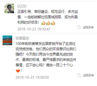 短時間內(nèi),《哦!生活垃圾焚燒發(fā)電原來是這么回事!》一文閱讀量突破三萬,可見鄱陽縣社會各界對該項(xiàng)目的廣泛關(guān)注。網(wǎng)友的留言中有90%對鄱陽縣建造生活垃圾焚燒發(fā)電廠表示認(rèn)可、鼓勵。