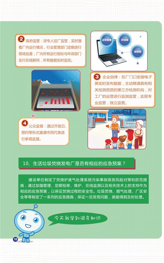 “我們制定了楚燒爐廢氣處理系統(tǒng)污染事故排放風(fēng)險對策和防范措施,通過加強(qiáng)管理、定期檢修、維護(hù)、在線監(jiān)測以及相關(guān)技術(shù)上的支持作為相應(yīng)的應(yīng)急預(yù)案,以保證焚燒過程的安全性。垃極焚燒煙氣處理、廠區(qū)安全等等制定了一系列的應(yīng)急措施,保證一且發(fā)觀問題,就能得到及時處理?!惫獯髧H有關(guān)負(fù)責(zé)人滿懷信心地介紹說。