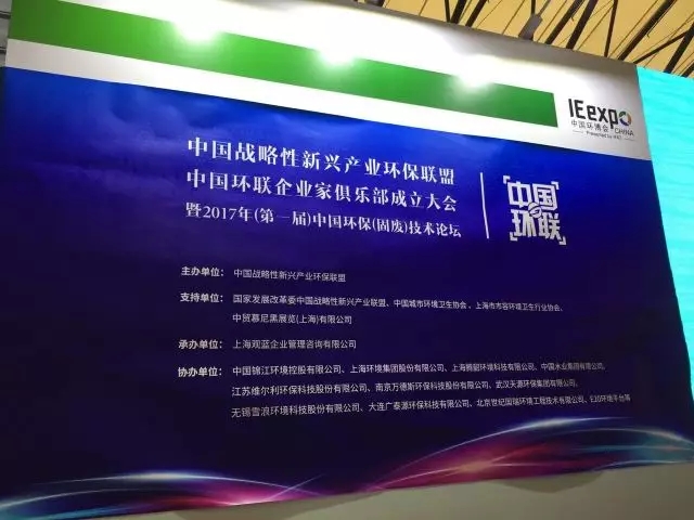 2017年5月4日,中國戰(zhàn)略性新興產(chǎn)業(yè)環(huán)保聯(lián)盟、中國環(huán)聯(lián)企業(yè)家俱樂部成立大會(huì)暨2017年(第一屆)中國環(huán)保(固廢)技術(shù)論壇在上海新國際博覽中心成功召開。在開幕式上,國家發(fā)展改革委中國戰(zhàn)略新興產(chǎn)業(yè)雜志執(zhí)行副社長、中國戰(zhàn)略性新興產(chǎn)業(yè)聯(lián)盟秘書長陳東升致辭并宣讀中國戰(zhàn)略性新興產(chǎn)業(yè)環(huán)保聯(lián)盟成立文件。中國城市環(huán)境衛(wèi)生協(xié)會(huì)理事長肖家保,中國戰(zhàn)略性新興產(chǎn)業(yè)環(huán)保聯(lián)盟、中國環(huán)聯(lián)企業(yè)家俱樂部理事長張益出席開幕式并致辭。開幕式現(xiàn)場,中國環(huán)博會(huì)項(xiàng)目總監(jiān)胡勛洲宣布和中國環(huán)聯(lián)論壇戰(zhàn)略合作。開幕式最后,為聯(lián)盟學(xué)術(shù)委員會(huì)、戰(zhàn)略委員會(huì)主任委員以及副理事長、常務(wù)理事、理事單位頒發(fā)證牌。