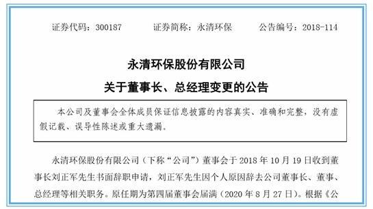 被要求協(xié)助調(diào)查半年之后,永清環(huán)保原董事長(zhǎng)、總經(jīng)理劉正軍書(shū)面請(qǐng)辭。此前,受“協(xié)助調(diào)查”一事的拖累,永清環(huán)保的重大資產(chǎn)重組剛剛告吹。
