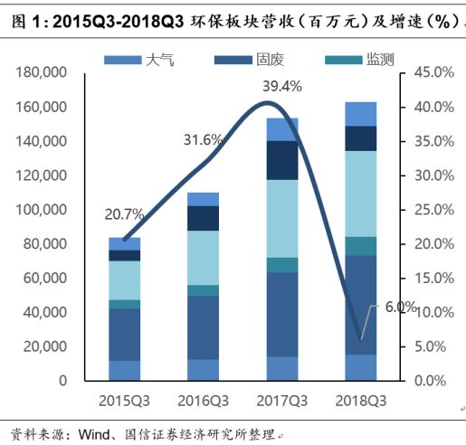 我們分析環(huán)保生態(tài)行業(yè)中大氣、固廢、水務(wù)、監(jiān)測、節(jié)能和園林六大板塊的65家公司的2018年三季報(bào)情況。同時根據(jù)板塊內(nèi)部公司的具體業(yè)務(wù),將固廢、水務(wù)兩大板塊進(jìn)一步拆分,將固廢板塊分為生活垃圾、危廢、環(huán)衛(wèi)、土壤修復(fù)、再生資源5個細(xì)分子板塊,將水務(wù)板塊分為水處理工程、水務(wù)運(yùn)營2個細(xì)分子版塊,從各項(xiàng)指標(biāo)詳細(xì)分析了環(huán)保行業(yè)整體的發(fā)展情況。