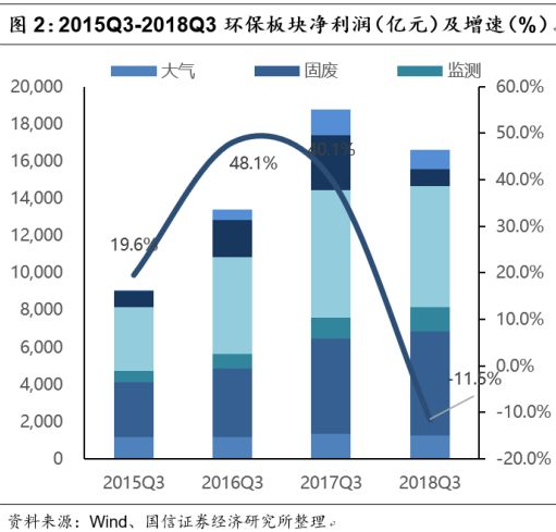 大氣板塊較為穩(wěn)健,略為下降(凈利潤-6.6%,營收+10.5%);