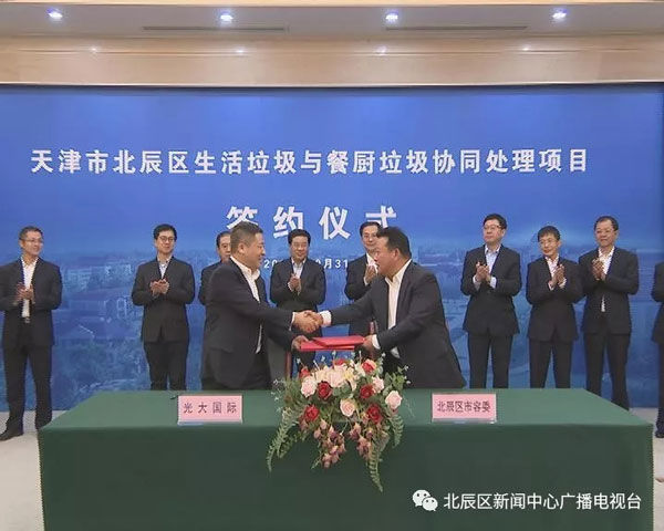 日前,北辰區(qū)與中國(guó)光大國(guó)際有限公司簽定生活垃圾與餐廚垃圾協(xié)同處理項(xiàng)目。中國(guó)光大國(guó)際有限公司總裁王天義、副總經(jīng)理胡延國(guó),中國(guó)光大銀行天津分行行長(zhǎng)陳紹寧,區(qū)委副書(shū)記、區(qū)長(zhǎng)王寶雨,副區(qū)長(zhǎng)胡學(xué)春出席簽約儀式。