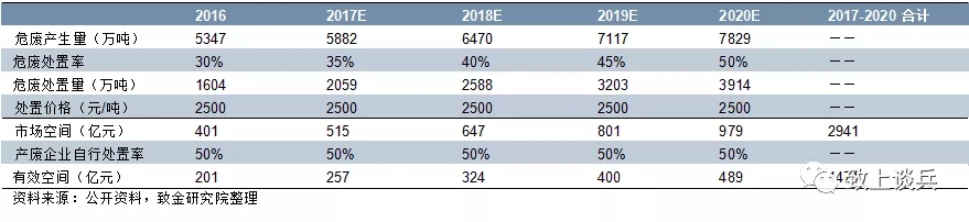 圖表:危廢市場(chǎng)空間測(cè)算(按官/方統(tǒng)計(jì)數(shù)據(jù)口徑)