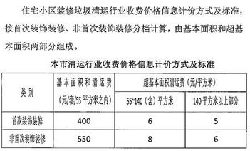 注:只有毛坯房的裝修屬于表格中所謂的首次裝飾裝修,買的精裝修新房再裝修的的話就屬于非首次裝修裝飾;小區(qū)裝修垃圾清運費的收費標準會隨著社會各類相關(guān)成本的改變而調(diào)整,但每次調(diào)整都會事先公布。