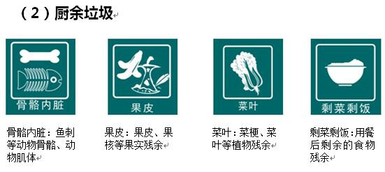 2.每類生活垃圾下設典型組分的小標志,具體標志如下: