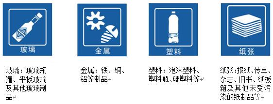 1.具體四類生活垃圾的大標志如下: