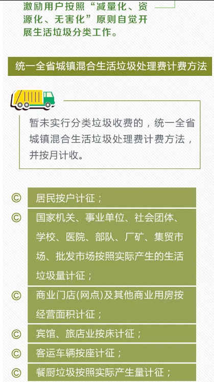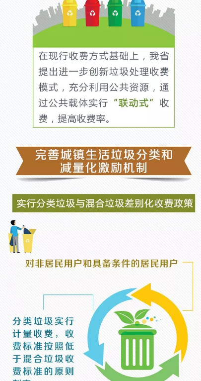 到2020年底前各市、縣(市、區(qū))要全面建立,覆蓋到所有建制鎮(zhèn)的生活垃圾處理收費(fèi)制度,按照《通知》,對(duì)非居民用戶和具備條件的居民用戶實(shí)行分類垃圾與混合垃圾差別化收費(fèi)政策,激勵(lì)用戶按照“減量化、資源化、無(wú)害化”原則,自覺開展生活垃圾分類工作,促進(jìn)垃圾源頭減量,推動(dòng)可再生資源回收利用。