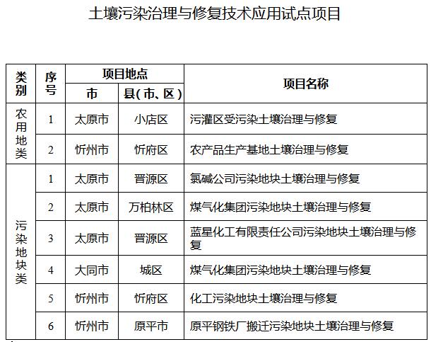 20.推進(jìn)土壤污染治理與修復(fù)項(xiàng)目庫建設(shè),強(qiáng)化土壤污染防治項(xiàng)目?jī)?chǔ)備。進(jìn)一步抓好土壤污染治理與修復(fù)技術(shù)應(yīng)用試點(diǎn)工作,2017年重點(diǎn)實(shí)施2個(gè)農(nóng)用地類和6個(gè)污染地塊類土壤污染治理與修復(fù)技術(shù)應(yīng)用試點(diǎn)項(xiàng)目(見附件),按照國(guó)家規(guī)定時(shí)限要求完成。以城市周邊污灌區(qū)、受污染耕地集中區(qū)域?yàn)橹攸c(diǎn),各市要啟動(dòng)一批受污染耕地治理與修復(fù)項(xiàng)目,全省共啟動(dòng)3000畝受污染耕地治理與修復(fù)。(省環(huán)保廳、省農(nóng)業(yè)廳、省國(guó)土資源廳牽頭,各市人民政府負(fù)責(zé)落實(shí))
