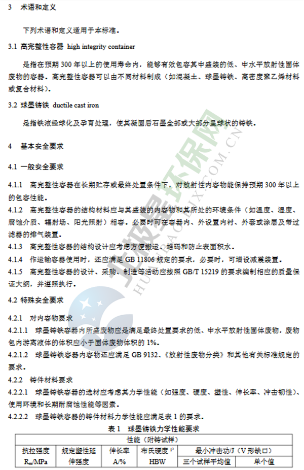 低、中水平放射性廢物高完整性容器——球墨鑄鐵容器(GB36900.1—2018)
