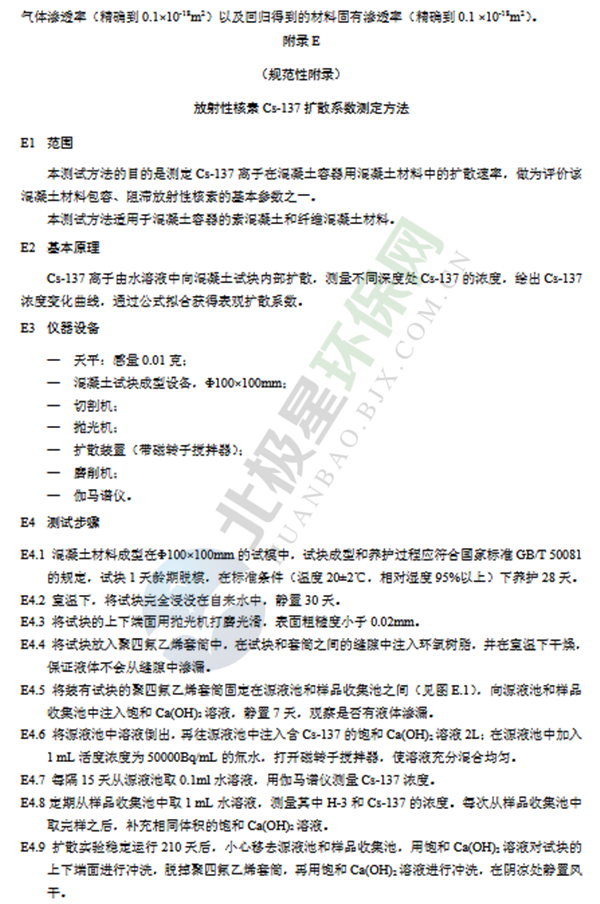 為貫徹《中華人民共和國環(huán)境保護法》《中華人民共和國放射性污染防治法》《中華人民共和國核安全法》,防治放射性污染,改善環(huán)境質(zhì)量,保護人體健康,制定本標準。低、中水平放射性廢物高完整性容器系列標準由三個不同材料制成的高完整性容器系列標準組成:—《低、中水平放射性廢物高完整性容器—球墨鑄鐵容器》(GB36900.1);—《低、中水平放射性廢物高完整性容器—混凝土容器》(GB36900.2);—《低、中水平放射性廢物高完整性容器—交聯(lián)高密度聚乙烯容器》(GB36900.3)。本標準為其中第二部分《低、中水平放射性廢物高完整性容器—混凝土容器》(GB36900.2),規(guī)定了用于包裝低、中水平放射性固體廢物所使用的混凝土高完整性容器(以下簡稱“混凝土容器”)的基本安全要求、產(chǎn)品性能要求、檢驗方法、檢驗規(guī)則、標識和產(chǎn)品的貯存和運輸要求。附錄A~G為規(guī)范性附錄。本標準為首次發(fā)布。
