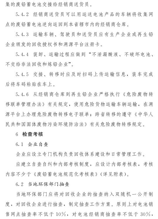 在試點(diǎn)市范圍內(nèi),廢鉛蓄電池在收集網(wǎng)點(diǎn)和經(jīng)銷商倉庫之間轉(zhuǎn)移,可使用鉛蓄電池貨物運(yùn)輸車輛轉(zhuǎn)運(yùn),廢鉛蓄電池自經(jīng)銷商轉(zhuǎn)運(yùn)至持危險廢物許可證的再生鉛企業(yè)、工業(yè)企業(yè)產(chǎn)生的廢鉛蓄電池集中轉(zhuǎn)運(yùn)的,按照危險廢物進(jìn)行管理,運(yùn)行危險廢物轉(zhuǎn)移聯(lián)單,遵守危險貨物運(yùn)輸管理有關(guān)規(guī)定。跨省轉(zhuǎn)移廢鉛蓄電池的,應(yīng)當(dāng)經(jīng)移出地和移入地省級環(huán)保部門批準(zhǔn)。