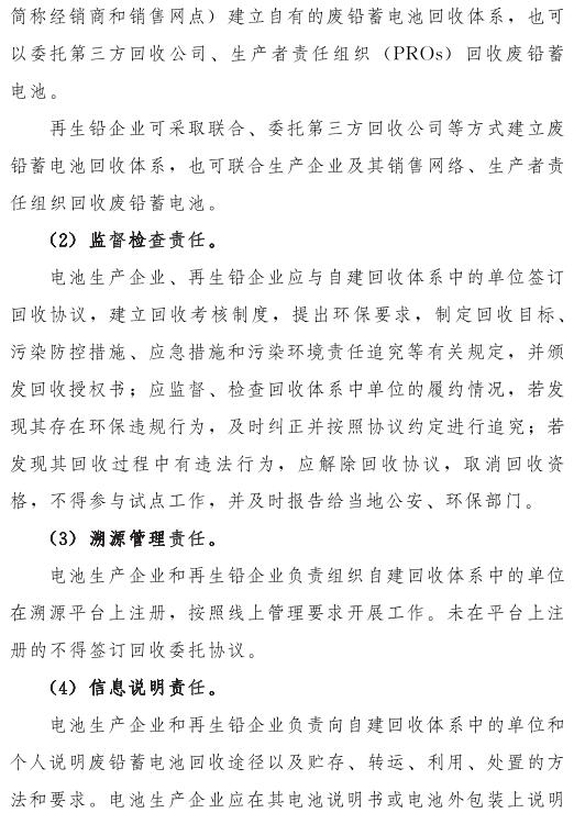 到 2018 年底,構(gòu)建廢鉛蓄電池集中收集、跨區(qū)域轉(zhuǎn)運方式和全過程溯源管理模式,年底總結(jié)試點地區(qū)經(jīng)驗,在全省范圍內(nèi)推行。到 2019 年底,試點企業(yè)落實廢鉛蓄電池規(guī)范化管理制度,建成廢鉛蓄電池逆向物流回收體系。到 2020 年底,試點企業(yè)的廢鉛蓄電池規(guī)范收集處理率不低于 40% 。