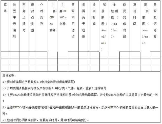 5.1 設(shè)備泄漏檢測(cè)與修復(fù)數(shù)據(jù)應(yīng)進(jìn)行記錄并保存至少 5 年,記錄內(nèi)容包括但不限于附錄C所列示的信息。