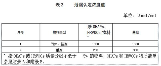 泄漏檢測(cè)值大于或等于表 2規(guī)定的泄漏認(rèn)定濃度值時(shí),即認(rèn)定發(fā)生了泄漏。泄漏設(shè)備應(yīng)即時(shí)系掛泄漏標(biāo)識(shí)牌。泄漏檢測(cè)值小于 20,000 μmol/mol時(shí)系掛黃色標(biāo)識(shí)牌,泄漏檢測(cè)值大于或等于 20,000μmol/mol時(shí)系掛紅色標(biāo)識(shí)牌。
