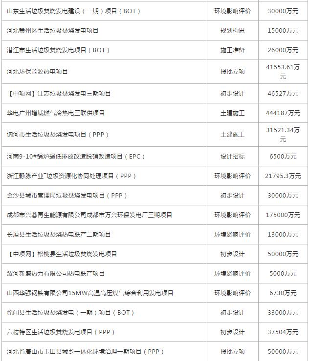 11月份全國擬在建垃圾發(fā)電項目