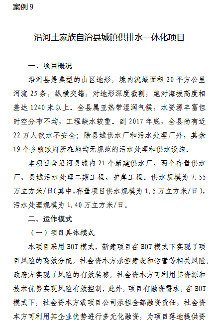 為規(guī)范有序推進我省PPP模式,充分發(fā)揮樣板工程典型案例的示范、引領(lǐng)和帶動作用,形成規(guī)范推進PPP的良好預(yù)期,為下一步健康推進PPP模式打下堅實基礎(chǔ)?,F(xiàn)將各地各有關(guān)部門報來的典型案例予以印發(fā),供各地參考借鑒。