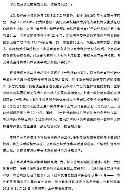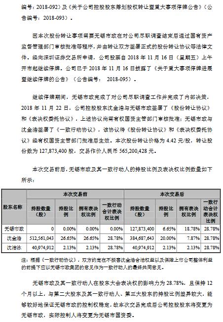 中金環(huán)境11月22日晚間公告,公司實際控制人沈金浩擬將1.28億股股份(占公司總股本的6.65%)轉(zhuǎn)讓給無錫市政,轉(zhuǎn)讓價格為4.42元/股,交易作價5.65億元。此外,沈金浩擬通過表決權委托方式將剩余股份中2.33億股股份對應的表決權委托給無錫市政,占公司總股本的12.13%。交易完成后公司控股股東將變更為無錫市政,實際控制人將變更為無錫市國資委。公司股票將于11月23日復牌。