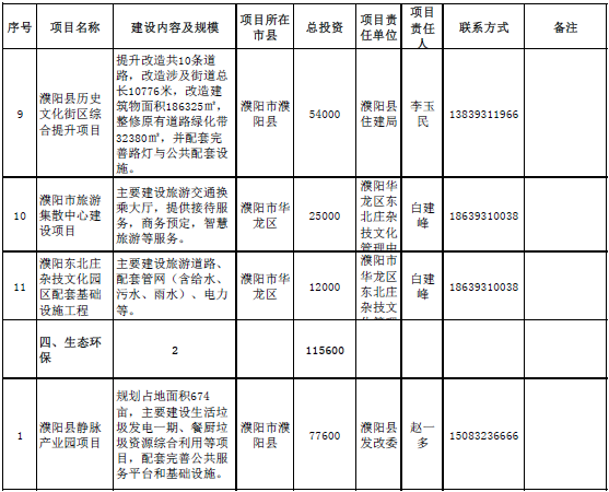 生態(tài)環(huán)保領(lǐng)域項目2個,總投資115600萬元,主要包括濮陽縣靜脈產(chǎn)業(yè)園項目、臺前縣靜脈產(chǎn)業(yè)園生活垃圾焚燒發(fā)電廠及污泥處置建設(shè)項目。